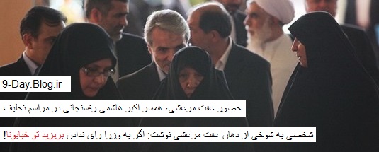 عکسی را دیدم که در آن به طنز از زبان عفت مرعشی همسر اکبر هاشمی و مادر مهدی هاشمی و فائزه هاشمی